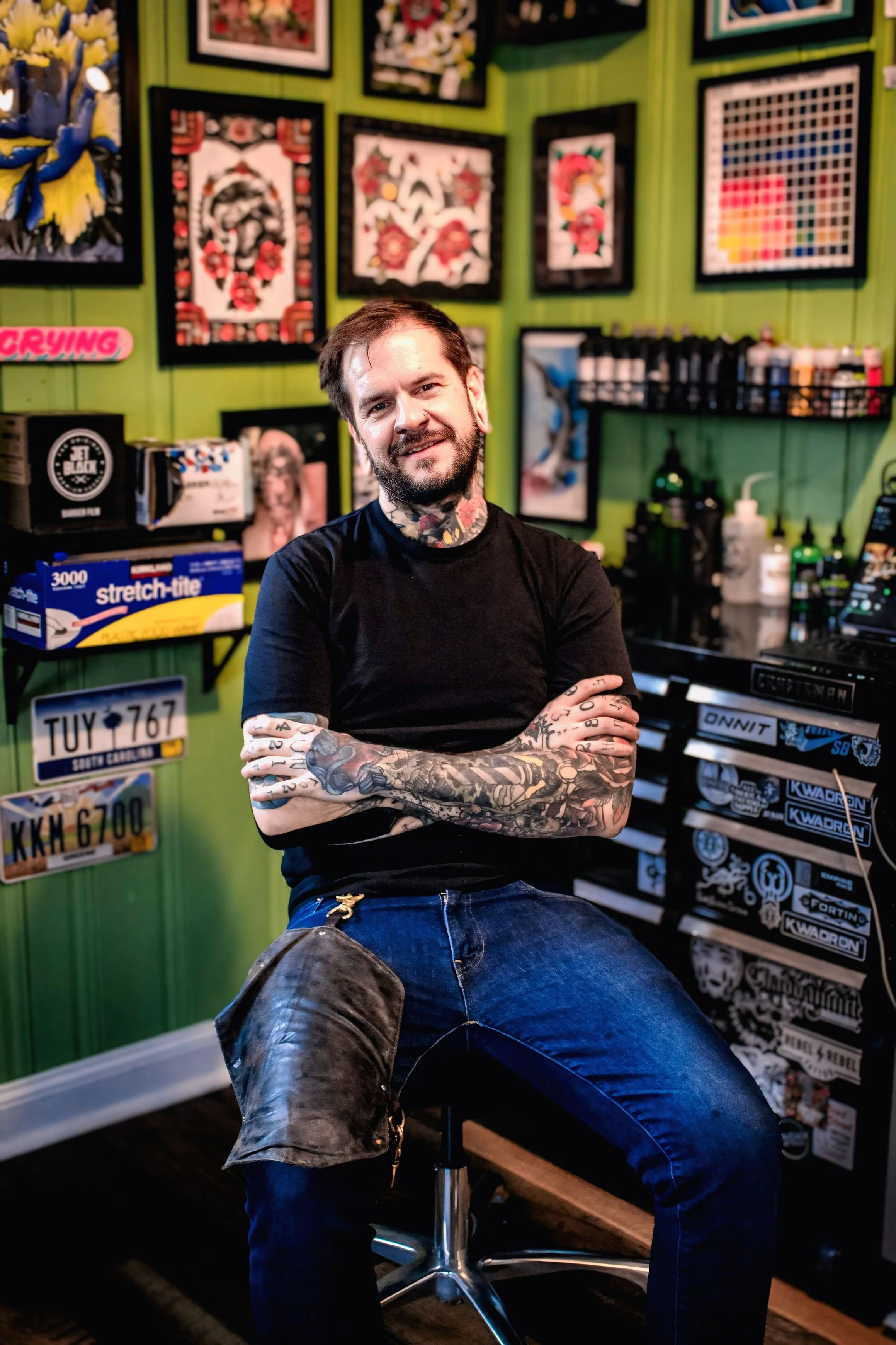 The highest quality equipment from needles to aftercare. Not one thing in my shop was overlooked. Your time and comfort are not abused here, this is about providing you the very best service at every turn.
